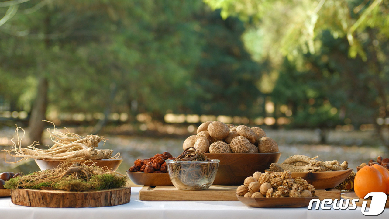 푸드(K-FOREST FOOD)를 개발해 다음 달 1일부터 시범사업을 한다고 31일 밝혔다. 시범사업 운영 대상은 밤, 감, 호두, 대추, 고사리, 표고, 취나물, 도라지, 더덕, 산양삼이다. 사진은 청정 임산물 먹거리들. 2021.5.31